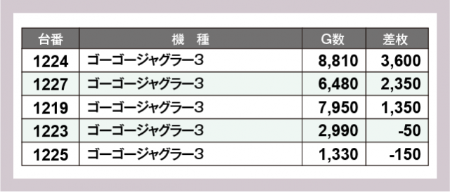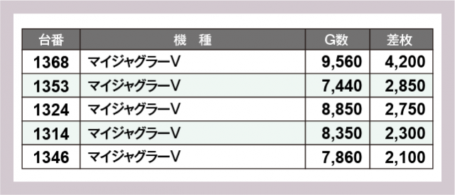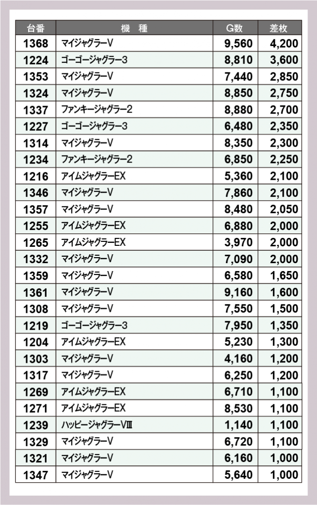 ※差枚数順に掲載しています