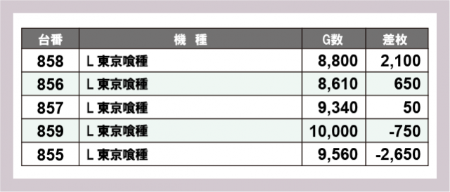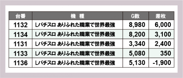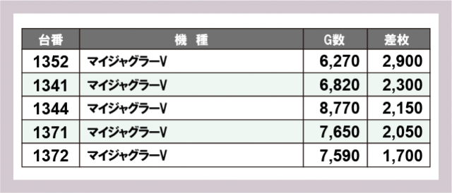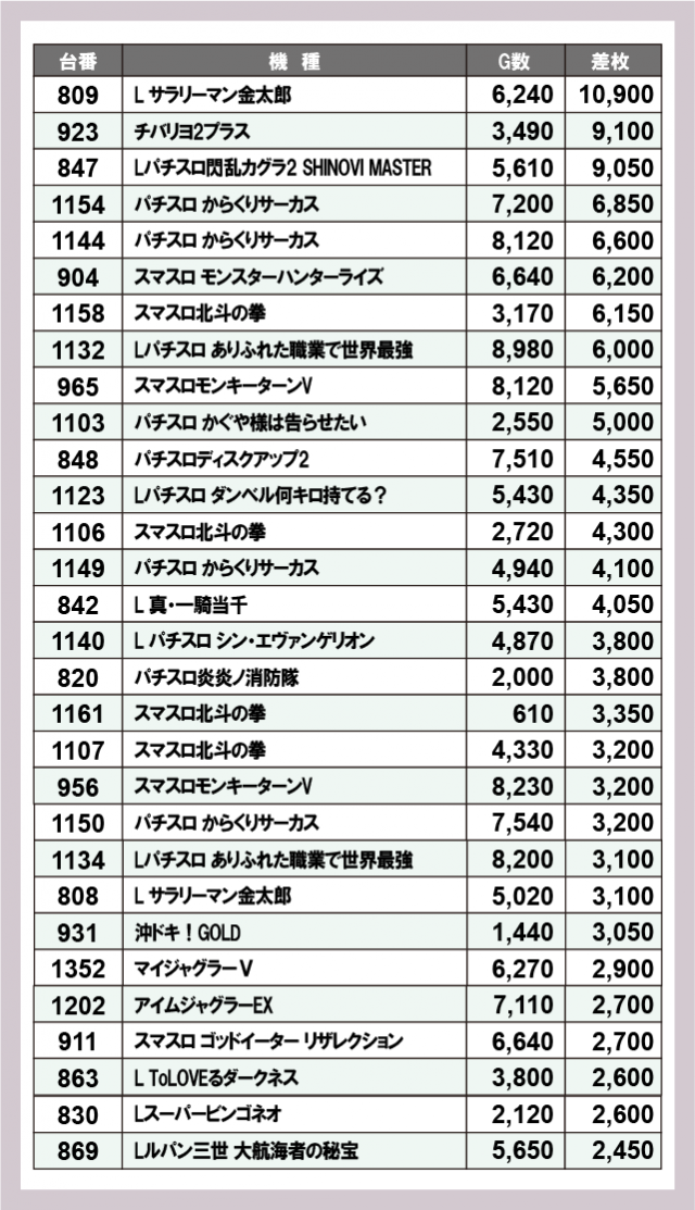 ※差枚数順に掲載しています