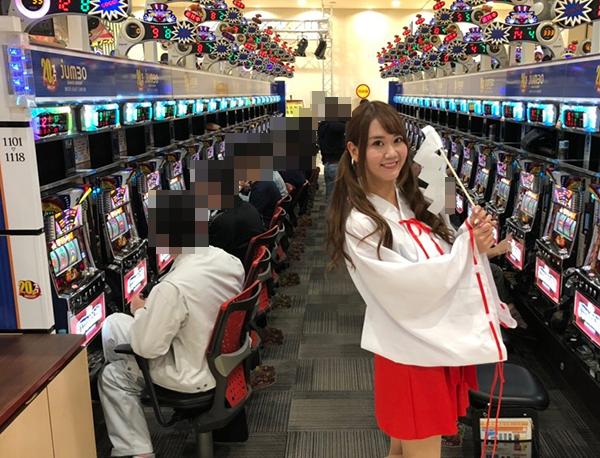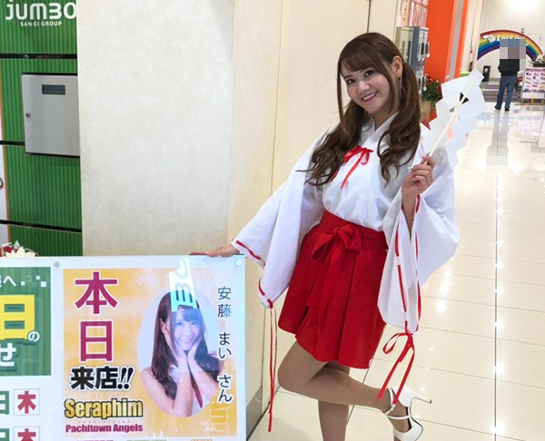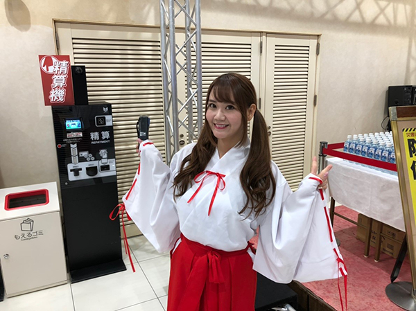本日は、巫女さん風のコスチュームで登場。バッチリ着こなせているね♪