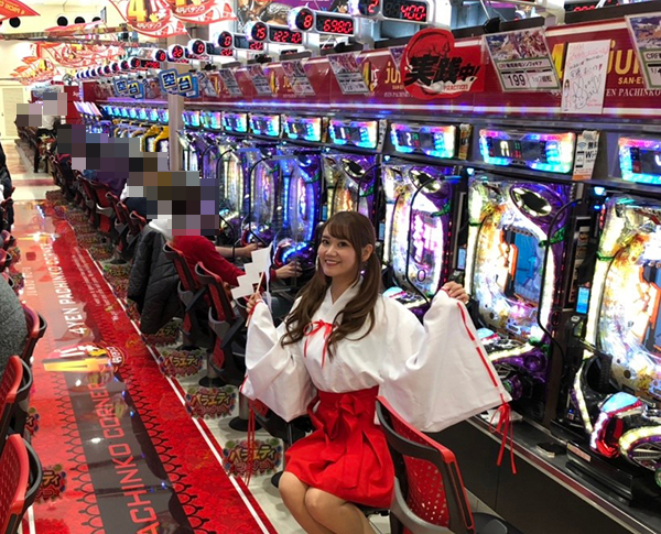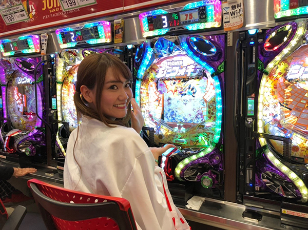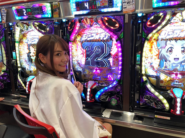 終盤には「CRフィーバー戦姫絶唱シンフォギア LIGHTver.」にもチャレンジ。機種のスペックが変わっても、楽しそうに遊技をおこなっていたまいちゃんでした~♪