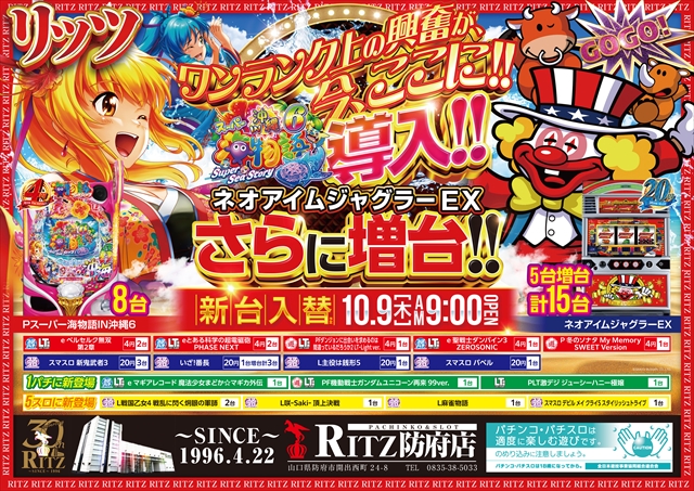 7月15日、山口県防府市にある「RITZ防府店」へと向かった。今回の取材は、「うおんちゅ!取材」だ。ミドルスペックから遊パチまで、幅広いスペックの機種に活躍をしている姿があった。