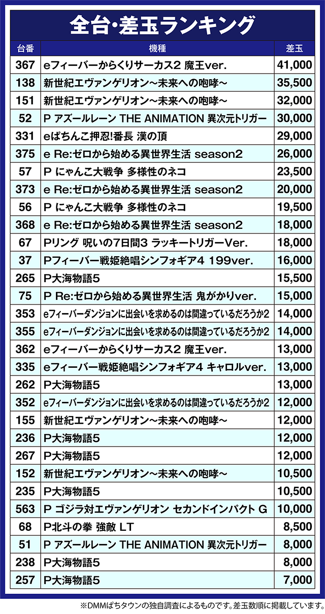 ※なお、本記事中のデータは全てDMMぱちタウンの独自調査によるものです