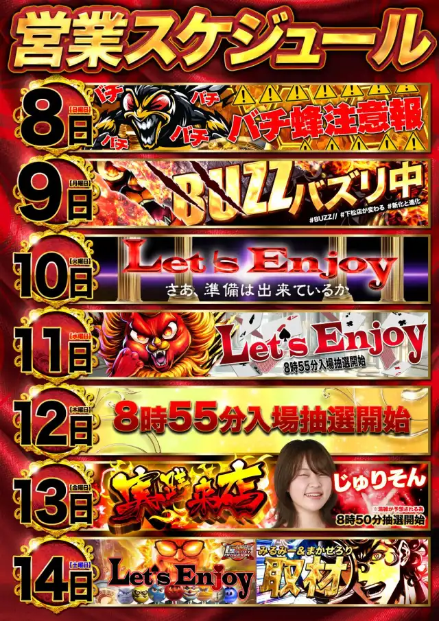 8:55までにお集まりいただいたお客様を対象に、入場順番券を配布いたします。 |