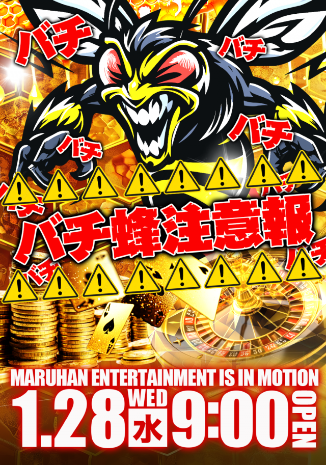 1月28日(水)バチ蜂注意報!朝9時オープン!