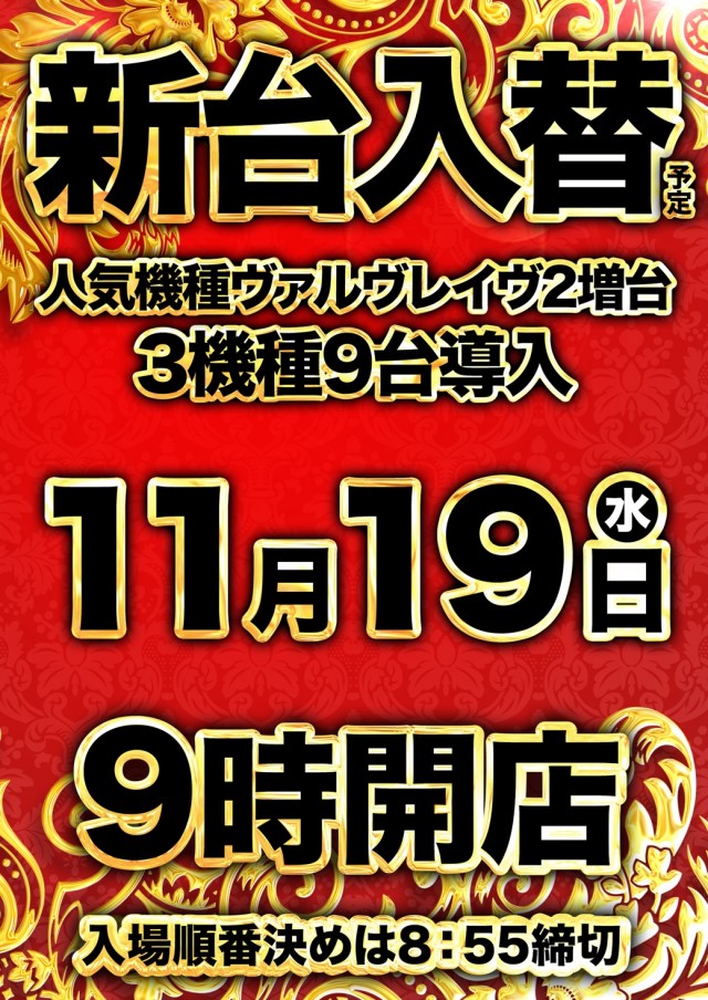 19日(水)☆新台入替☆&Let’sEnjoy&⚡型破り⚡