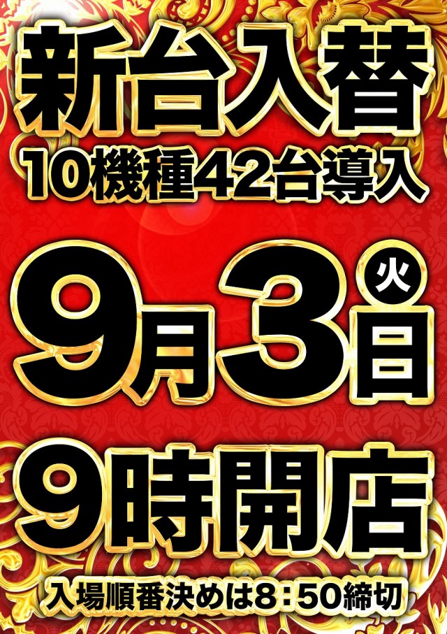 9月3日(火) 新台入替 BUZZ サミー機種装飾変更