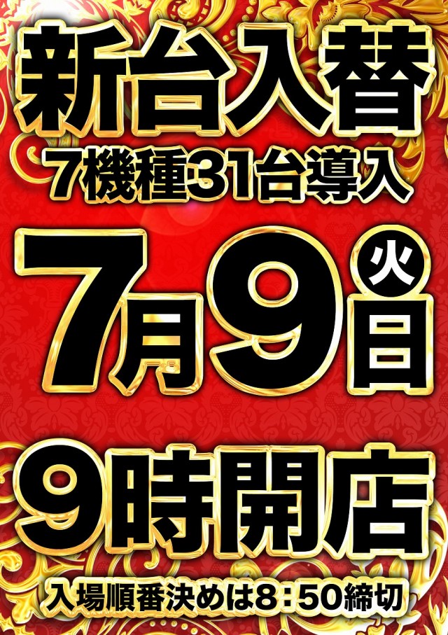 7月9日(火)⚡新台入替7機種31台導入!⚡BUZZ