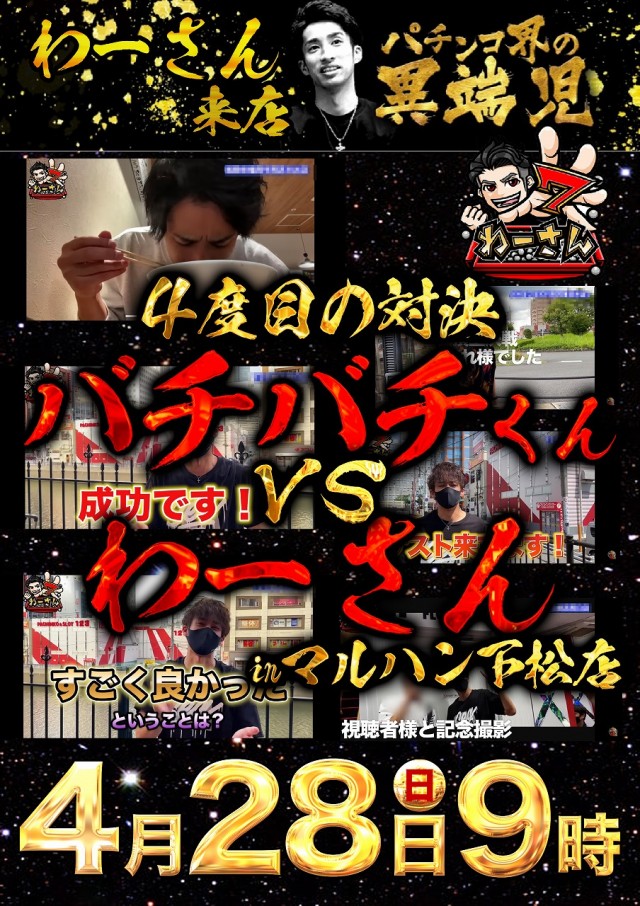 28日(日)4度目の対決【バチバチくんvsわーさん】