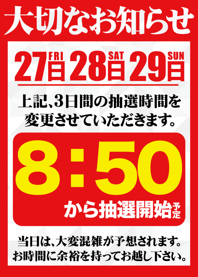 抽選時間変更➡【8:50】