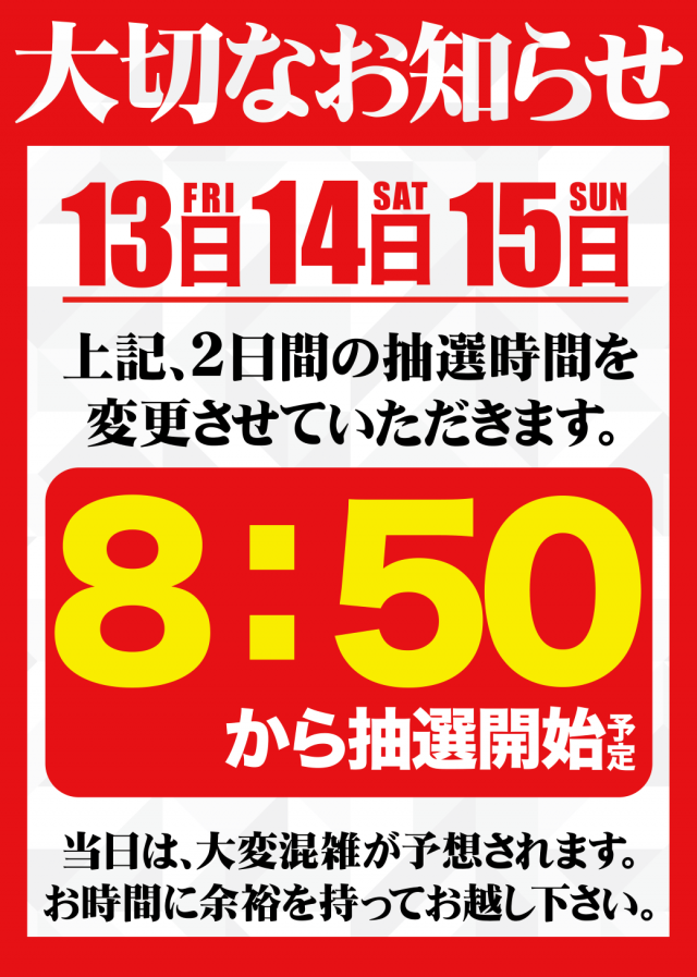 朝の抽選時間を変更しております