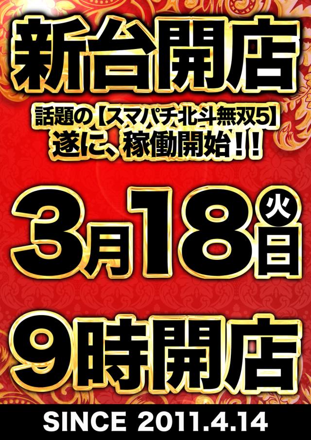 3月18日(火)⚡新台開店&山佐機種装飾変更⚡