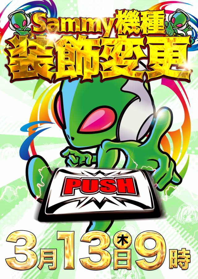3月13日(木)⚡BUZZバズリ中&サミー機種装飾変更⚡