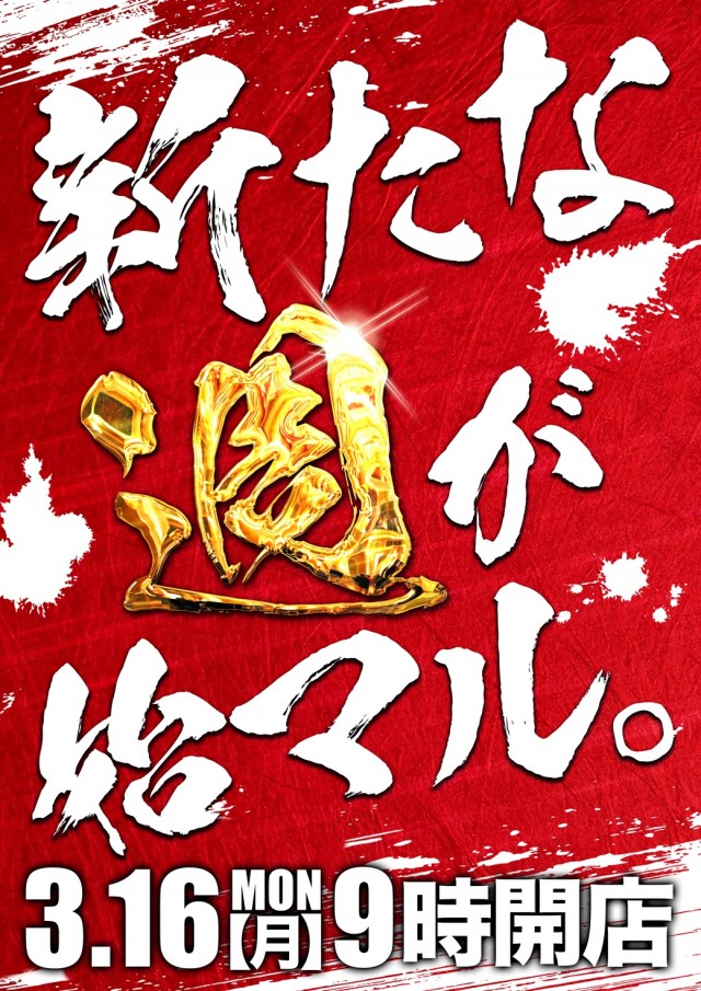 16日【月曜日】⚡新たな週が始マル⚡9時開店!!