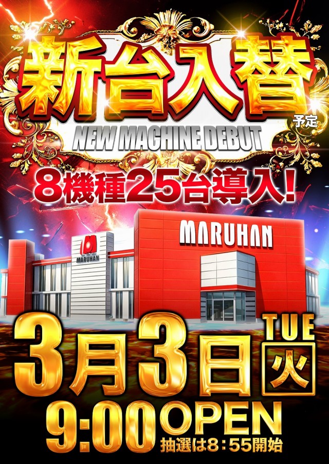 3月3日(火)⚡スロパチ来店取材⚡新台入替(予定)⚡