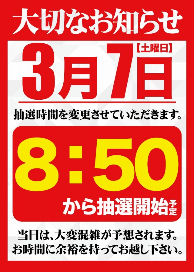 ╲朝の入場抽選のお時間を変更します/