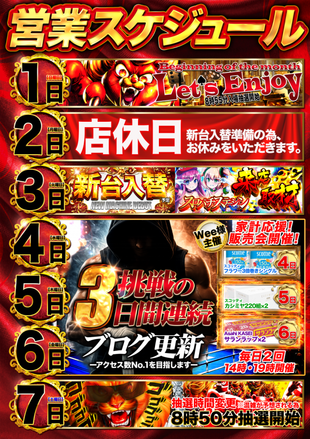 3日(火)⚡スロパチ来店取材⚡新台入替⚡
