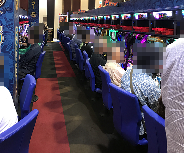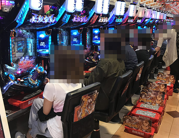 朝イチから多くのプレイヤーが集まっていた「マルハン下松店」。にぎわいがたえず、随所に笑顔が広がっていた。