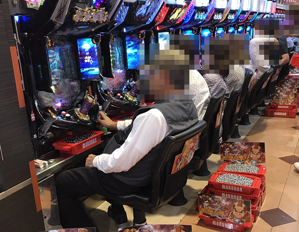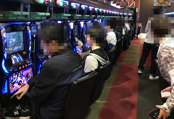 20円パチスロにおいて、とくに活気づいていたのが「押忍!番長3」と「バジリスク~甲賀忍法帖~絆」。プレイヤーの明るい笑顔からは、充実感を得られていることも伝わってきた。