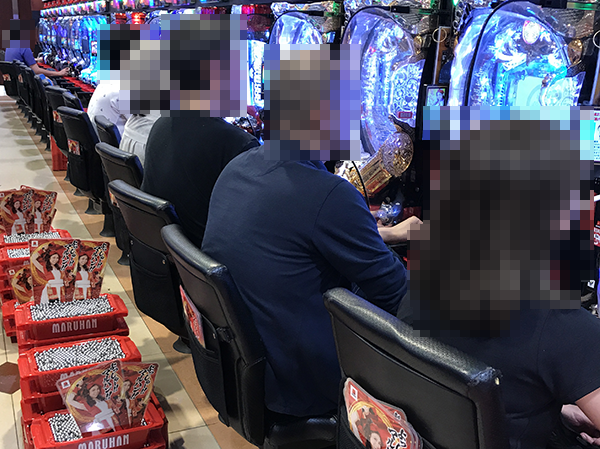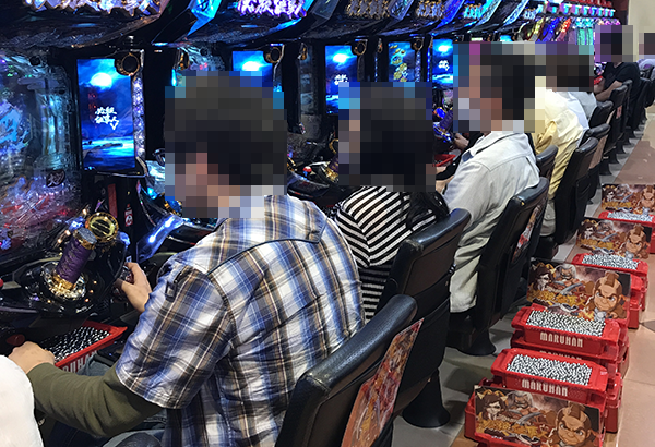 低貸し玉コーナーの支持も厚く、空き台はほとんど見当たらない。