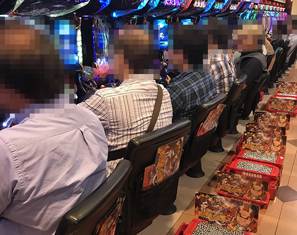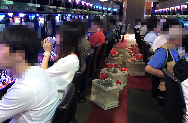 15時をまわった頃の4円パチンコでは、「CRぱちんこ必殺仕事人Ⅴ」や「ぱちんこCR北斗の拳7 転生」、「ぱちんこCR真・北斗無双」などが盛況。機種の性能を最大限まで引き出しているといったプレイヤーが多く、抜群の存在感を放っていた。