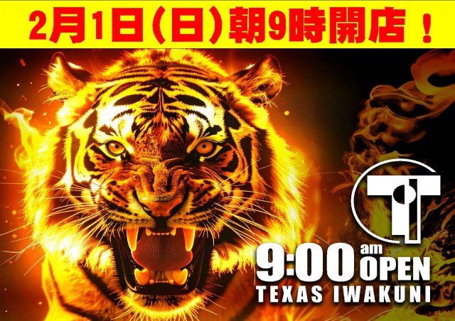 明日2月1日(日) 金虎降臨 全館朝9時開店!
