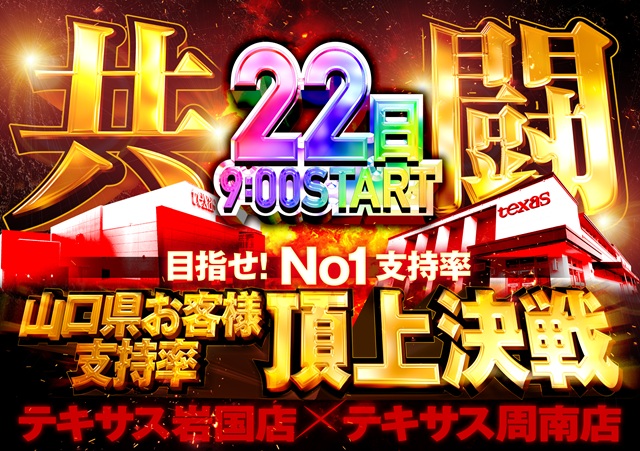 1月22日(木)【共闘】岩国店×周南店 全館朝9時開店!
