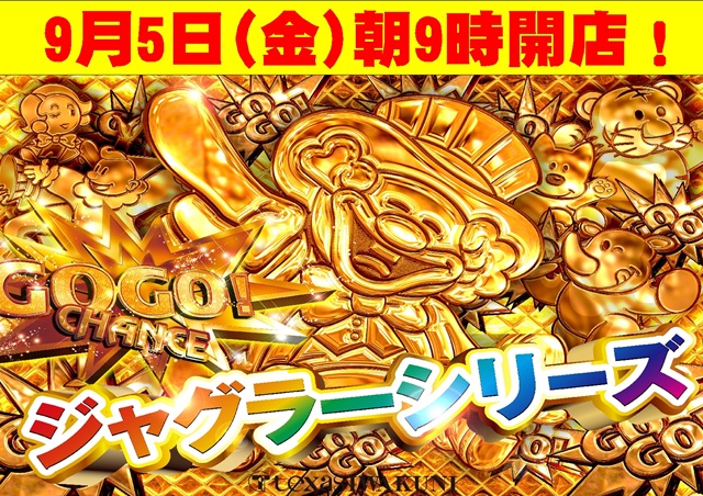 9月5日(金)朝9時開店!ジャグラーシリーズ80台設置!