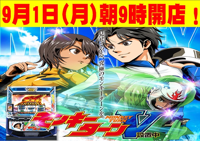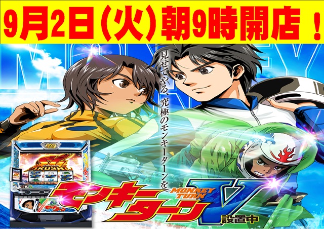 9月2日(火)朝9時開店!モンキーターン10台設置!