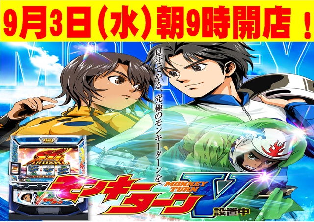 9月3日(水)朝9時開店!モンキーターン10台設置!