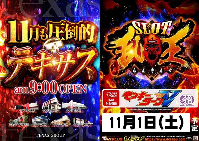 明日11月1日(土)テキサスグループ朝9時開店 乱王取材!!