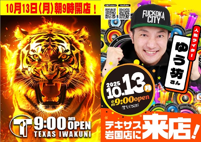 10月11日(土) テキサス岩国店 堂々朝9時フルオープン❗