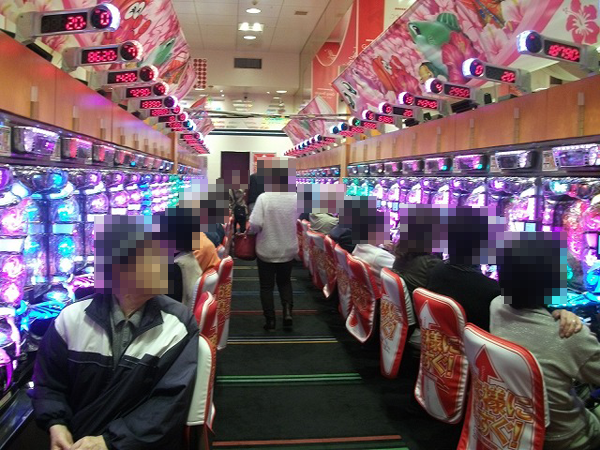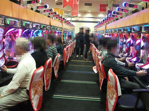ホール内ではパチスロコーナーのほうが人気は高く、14時を過ぎるころには満席となっている機種も多数。とくにジャグラーコーナーは大勢のプレイヤーで賑わっていた。ジャグラーコーナーは、設置台数、機種の種類が多いことや専用の装飾がされているということもあり、プレイヤーをおおいに楽しませているといった雰囲気も味わうことができた。
