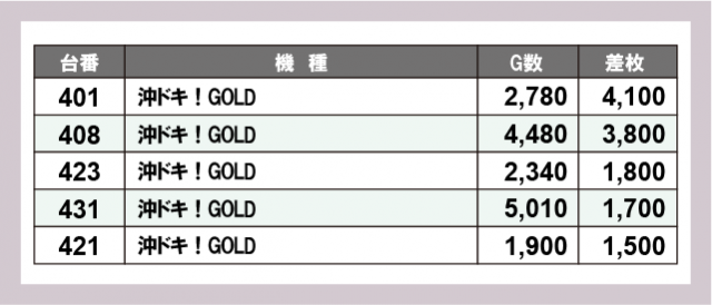 ※差枚数順に掲載しています