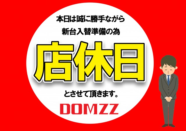 本日5日(水)新台入替準備の為、ドムズはお休みです…💤