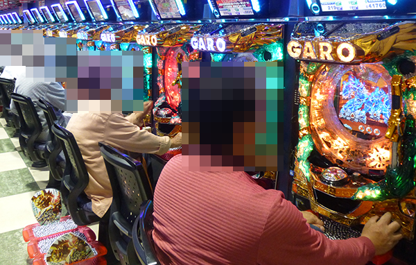 14時過ぎの4円パチンコをみると、ほぼ満席の「CR牙狼 魔戒ノ花」がひときわ大きく盛り上がっていた。