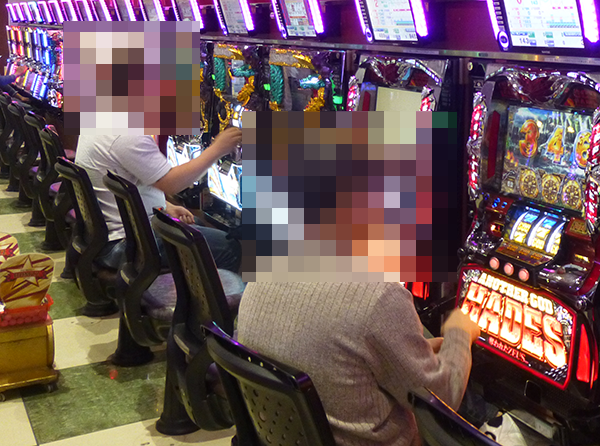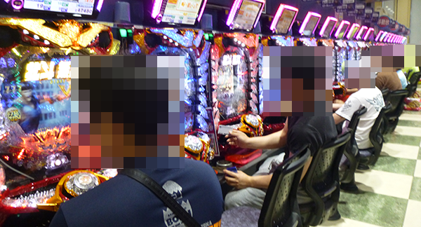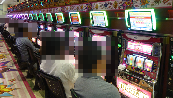 ジャグラーシリーズにも多くのプレイヤーがおり、シンプルな告知演出を堪能しているといった姿もみられた。