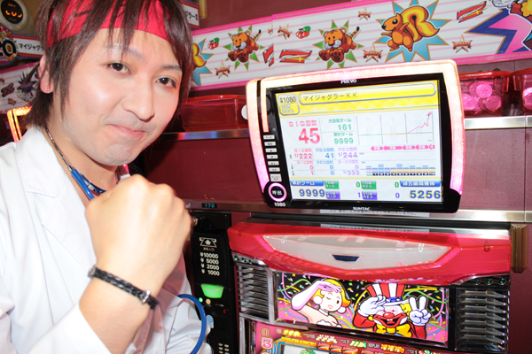 あまりにもボーナス回数が増えてしまったため不安になったのか、区切りのいいゲーム数でポーズをとる姿はどこかぎこちない。