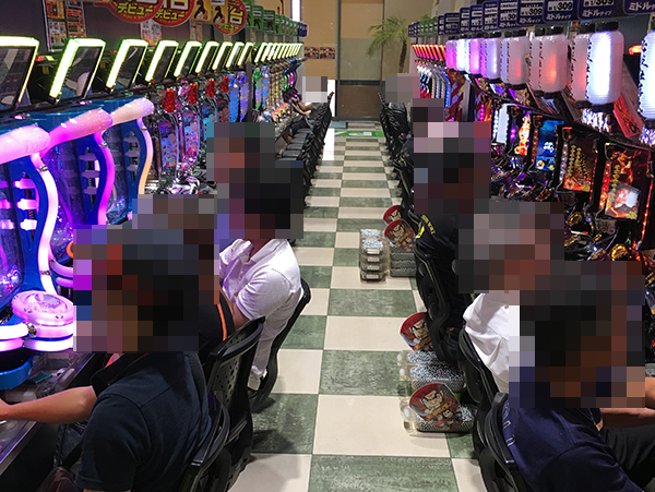 15時半をすぎた頃の4円パチンコをみてみると、「CRぱちんこ必殺仕事人Ⅴ」と「ぱちんこCR北斗の拳7 転生」に活躍をしているプレイヤーの姿があった。納得のいく遊技をおこなえているためか、満面の笑みを浮かべていたことも覚えている。