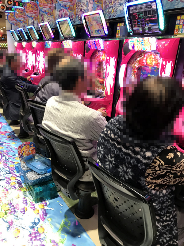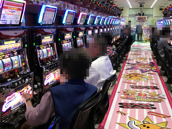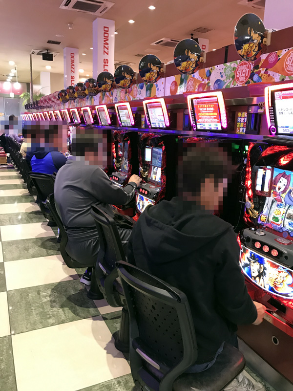 ジャグラーシリーズのコーナーも活気にあふれており、幅広い年代のプレイヤーがシンプルな告知演出を存分に楽しんでいた。機種のポテンシャルを発揮していたプレイヤーも確認している。