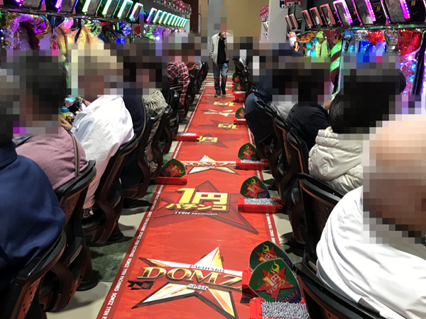 14時過ぎの4円パチンコでは、海物語シリーズを筆頭に、新台「CR麻雀物語〜役満乱舞のドラム大戦〜」などが賑やかな雰囲気。