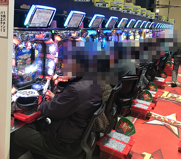 14時頃の4円パチンコでは、「CR大海物語4」をはじめとした海物語シリーズが盛況。なかには、理想的な展開に笑みを浮かべるといったプレイヤーも確認している。