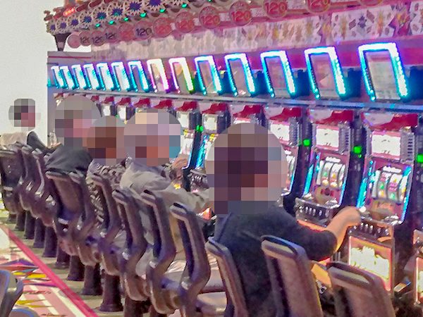 機種構成が魅力的な5円パチスロを見てみると、ほぼ満席となるほどの好評を得ていた。