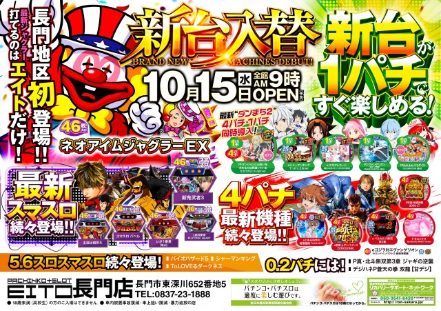 エイト長門店🐝最新機種導入🎵9時開店🍭