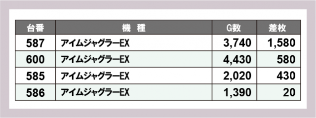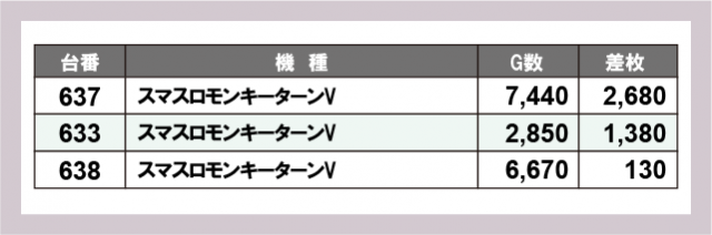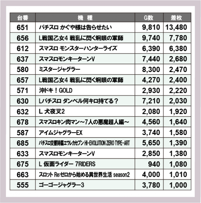 ※差枚数順に掲載しています