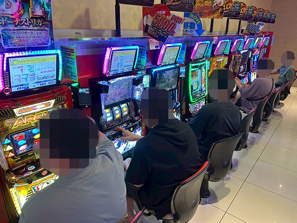 5.6円パチスロの稼働も高い。楽しそうにレバーを叩くプレイヤーの姿を複数目撃している。