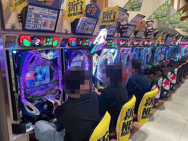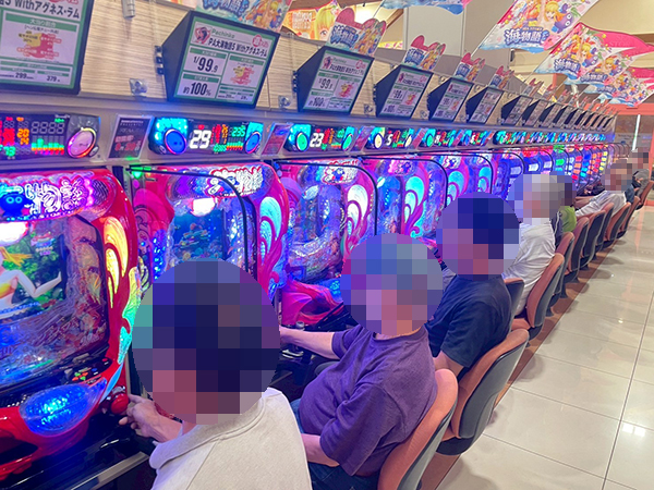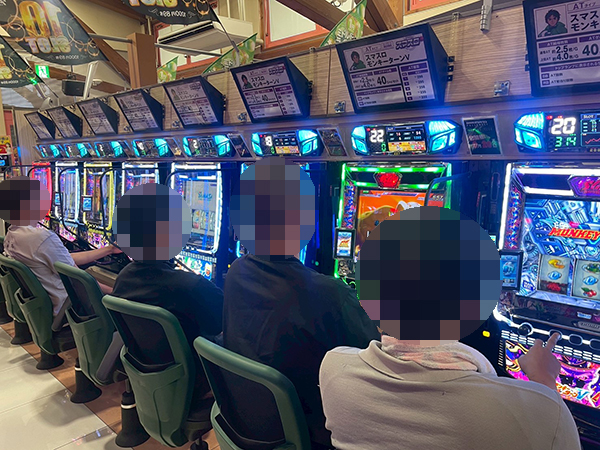 取材時は既に多くのプレイヤーであふれており、パチンコ・パチスロを問わず楽しげな表情でいっぱいだった。