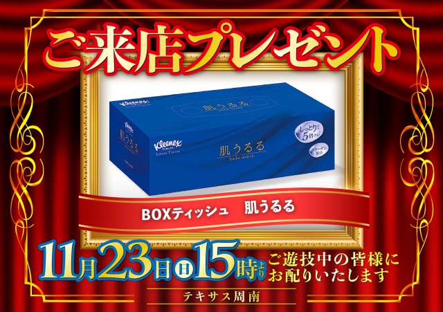 11月23日【日】ご来店プレゼント配布!全館9時開店!!