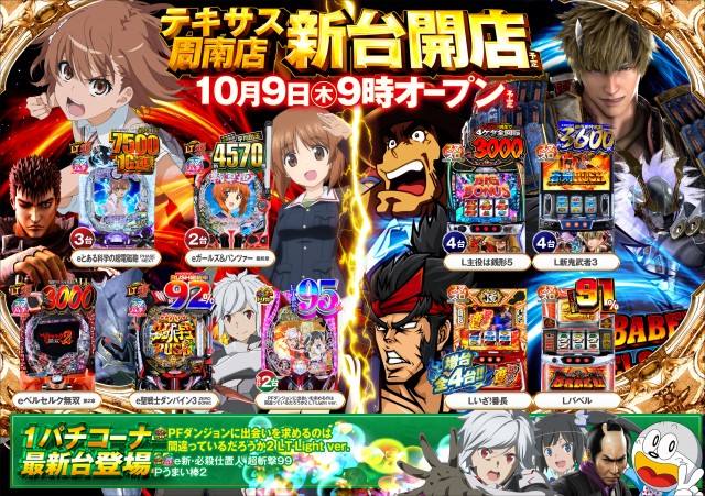 10月9日【木】新台開店! AM9時開店!!