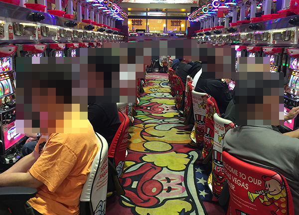 14時過ぎのパチスロをみると、朝から人気の「バジリスク~甲賀忍法帖~絆」や「ミリオンゴッド-神々の凱旋-」で、多数のプレイヤーが笑みを浮かべて遊技をおこなっていた。