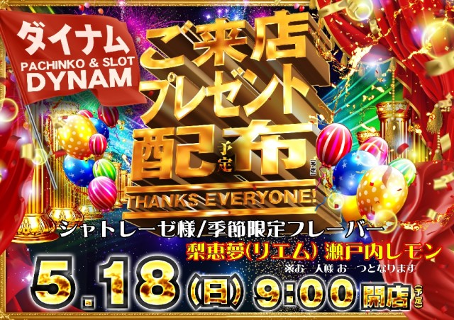 本日5/3(土) 新スタイル登場 9時開店(予定)!